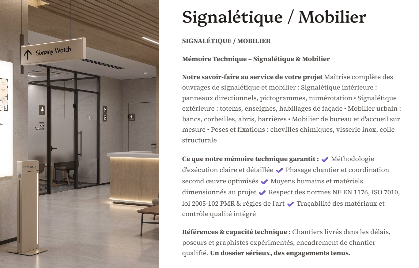 Pack Mémoire Technique Signalétique Mobilier — MT + PPSPS + SOGED + SOPAQ