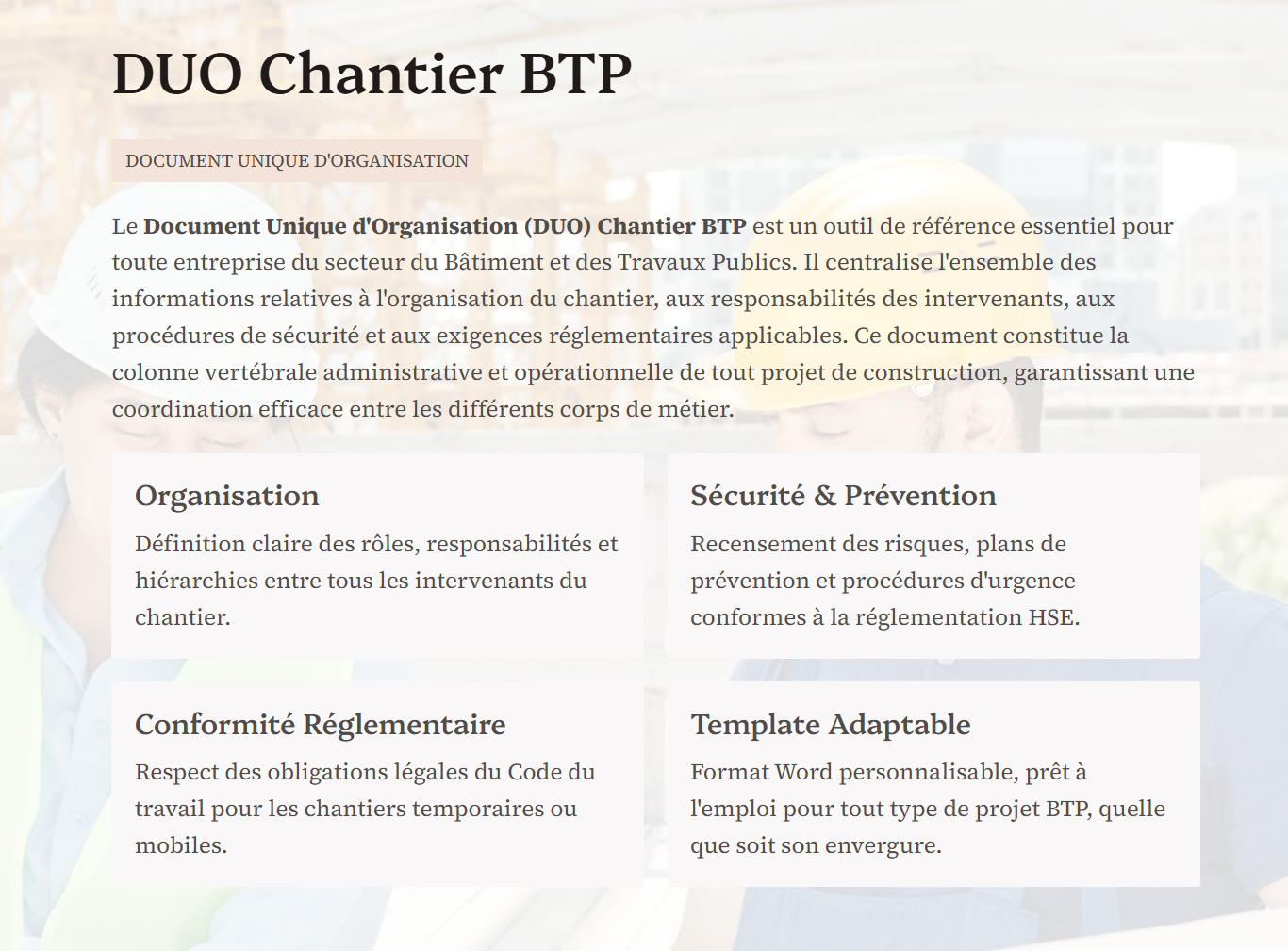 DUO Chantier BTP — Document Unique Organisation — Template Word